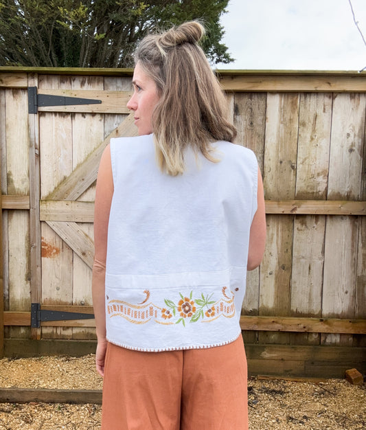 The Quilted Gilet. Vintage Fish Print Cotton. Size 12-14