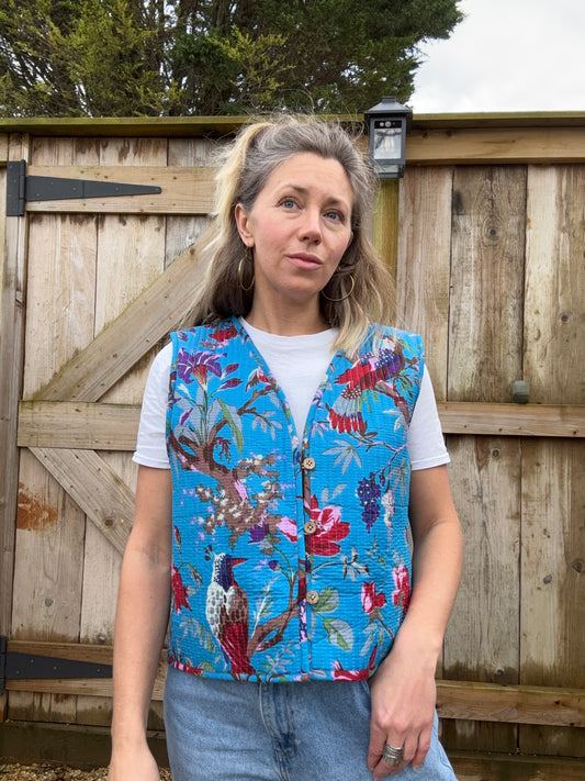 The Quilted Gilet in Spring bird. Size 14
